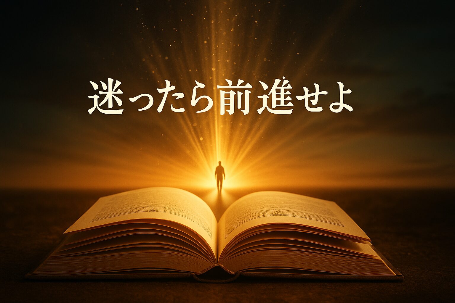 そんな時は『迷ったら前進せよ』って、この本に書いてあったよ!