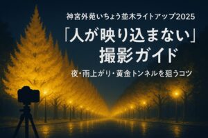 👉【2025年】神宮外苑いちょう並木ライトアップ“人が映り込まない”撮影ガイド