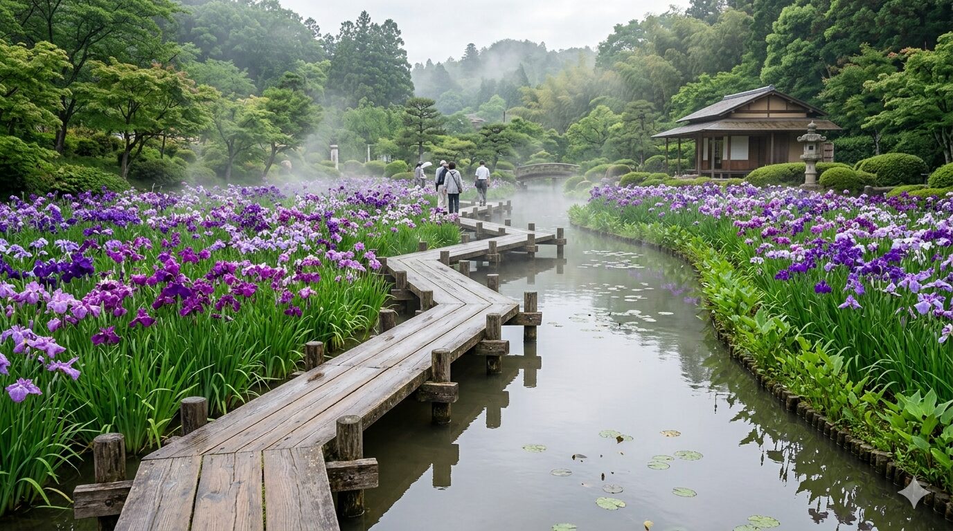 The best time to see hana-shobu (Japanese iris / water iris) in the Kanto region is late May to late June, peaking in early to mid-June. Top spots: Yokosuka Shobu-en (400+ varieties, 140,000 plants; ¥500 admission during the festival, May 23–late Jun); Suigo Sawara Ayame Park in Chiba (1.5 million plants, East Asia’s largest; ¥800 during the festival, includes traditional boat rides); Katsushika Iris Festival in Tokyo at Horikiri Garden and Mizumoto Park (free admission, May 25–Jun 14, 2026). Irises are especially beautiful in the rain — don’t let drizzle stop you!