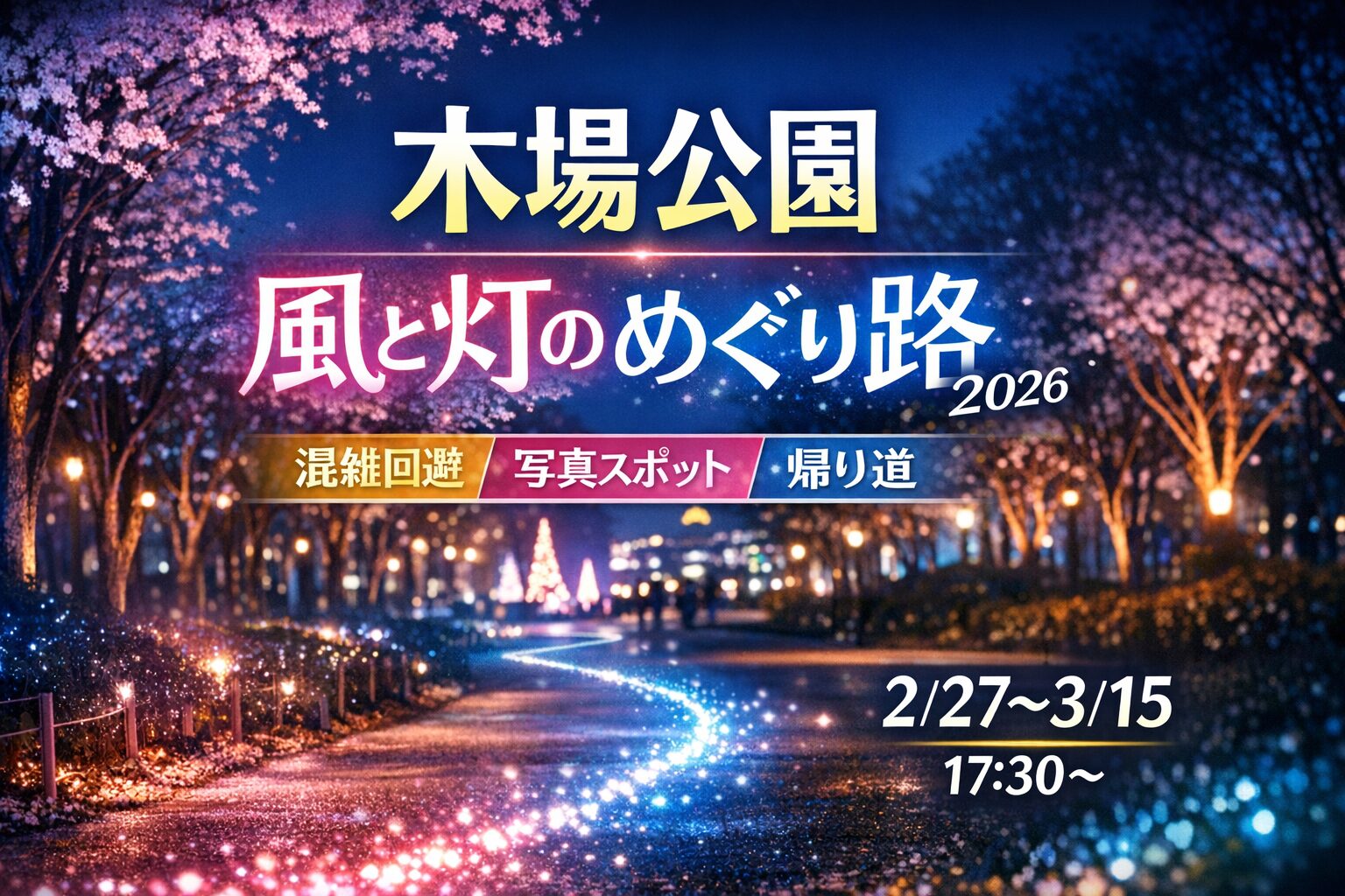 木場公園の夜イベント「風と灯(あかり)のめぐり路 ~花が舞う早春の輝~」は、入場無料でふらっと行けるのが魅力。とはいえ夜は「どこを回れば満足?」「点灯直後は混む?」「寒さと帰りが不安…」になりがちです。