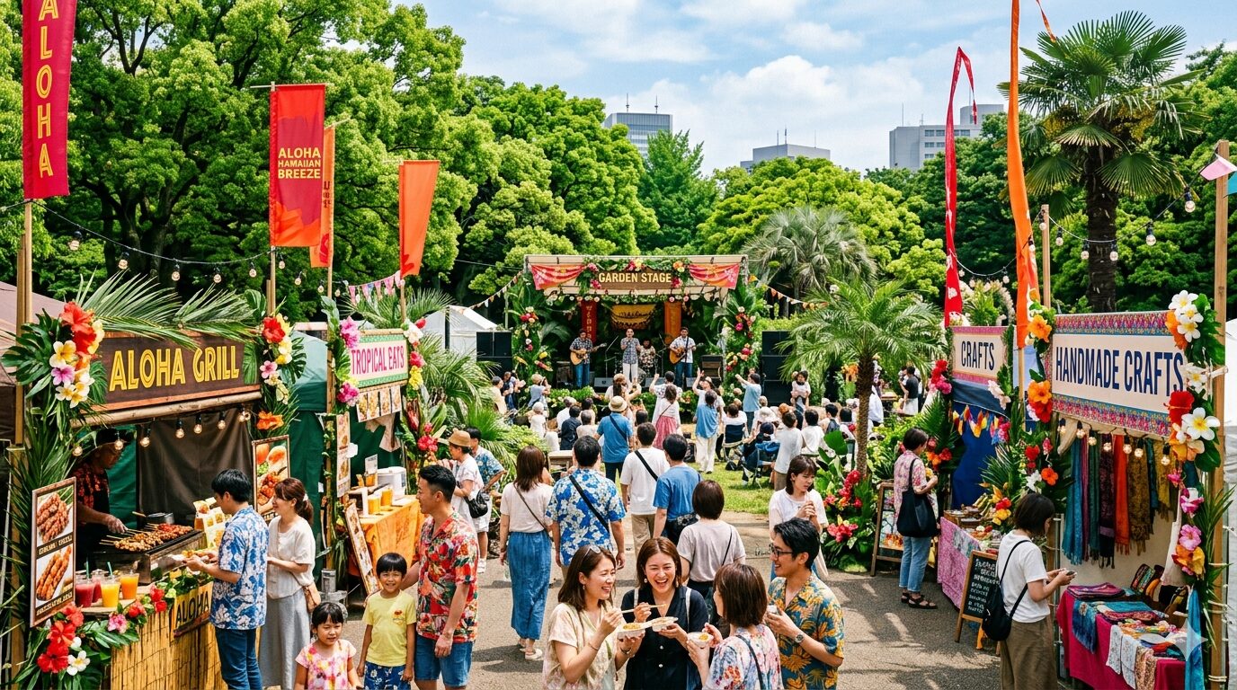 OKINAWA FES Milafete 2026 (May 16–17) is Tokyo’s largest Okinawa culture festival, held at Yoyogi Park Event Square in Shibuya. Now in its 10th anniversary year, the free admission event draws over 250,000 visitors across 2 days. Highlights include live music from top Okinawan artists (Kariyushi58, Kiiyama Shoten, D-51, etc.) across 4 stages, traditional Ryukyuan performing arts (taiko drums, sanshin), Okinawan street food, and craft/regional booths. Note: umbrellas are not allowed in stage areas — bring a raincoat. No blankets or chairs allowed. Pets welcome on leash. Access: JR Harajuku Station (9-min walk) or Tokyo Metro Meiji-jingumae Station (5-8-min walk).
