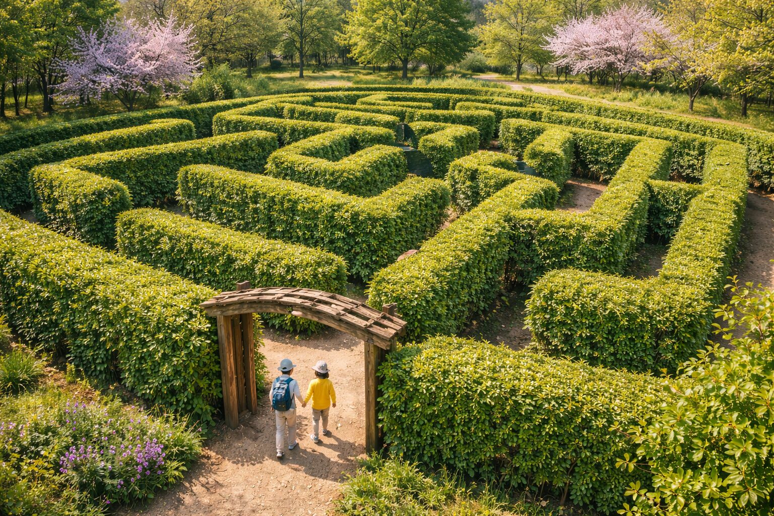 ベビーカーOK?迷路の森の子連れ動線(抱っこ紐が安心な場面)