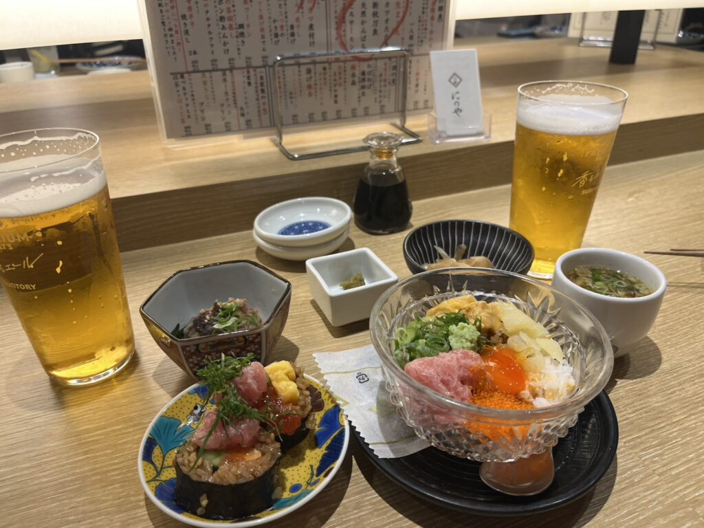 - 寿司とおでんを“あて”感覚で一緒に楽しめる珍しいスタイル